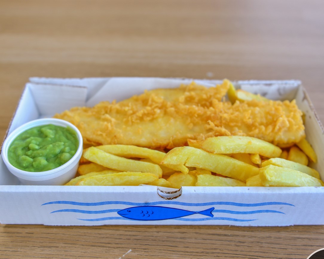 The takeaway focuses on doing the basics well: fresh cod with crispy batter, chips cooked to order, and a decent range of traditional sides like sausages and cheesy or salt & chilli chips. The portions are generous, making it a solid option for families or anyone after a familiar, comforting British takeaway.